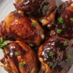 The secret behind a Savory Baked Barbecue Chicken Thighs Recipe That’s a Crowd-Pleaser is that glossy glaze that clings to the chicken, not a thin sauce that runs everywhere. The trick is layering and timing. Brush thin coats during baking, not one heavy slather at the end. Each pass goes back into the heat so the sugars set and the sauce reduces right on the chicken.